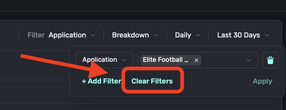 To remove an individual filter, click on the trash can icon on the trailing side of it: