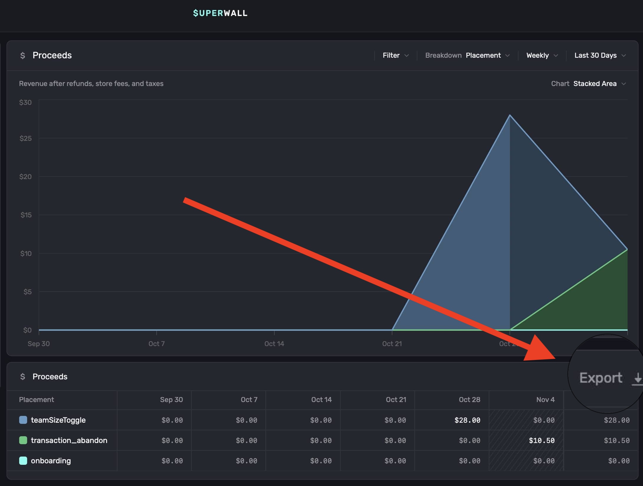 Breaking down a Proceeds chart by Placements is a powerful way to directly correlate features you make (or similar things you've paywalled) to your app's revenue growth.