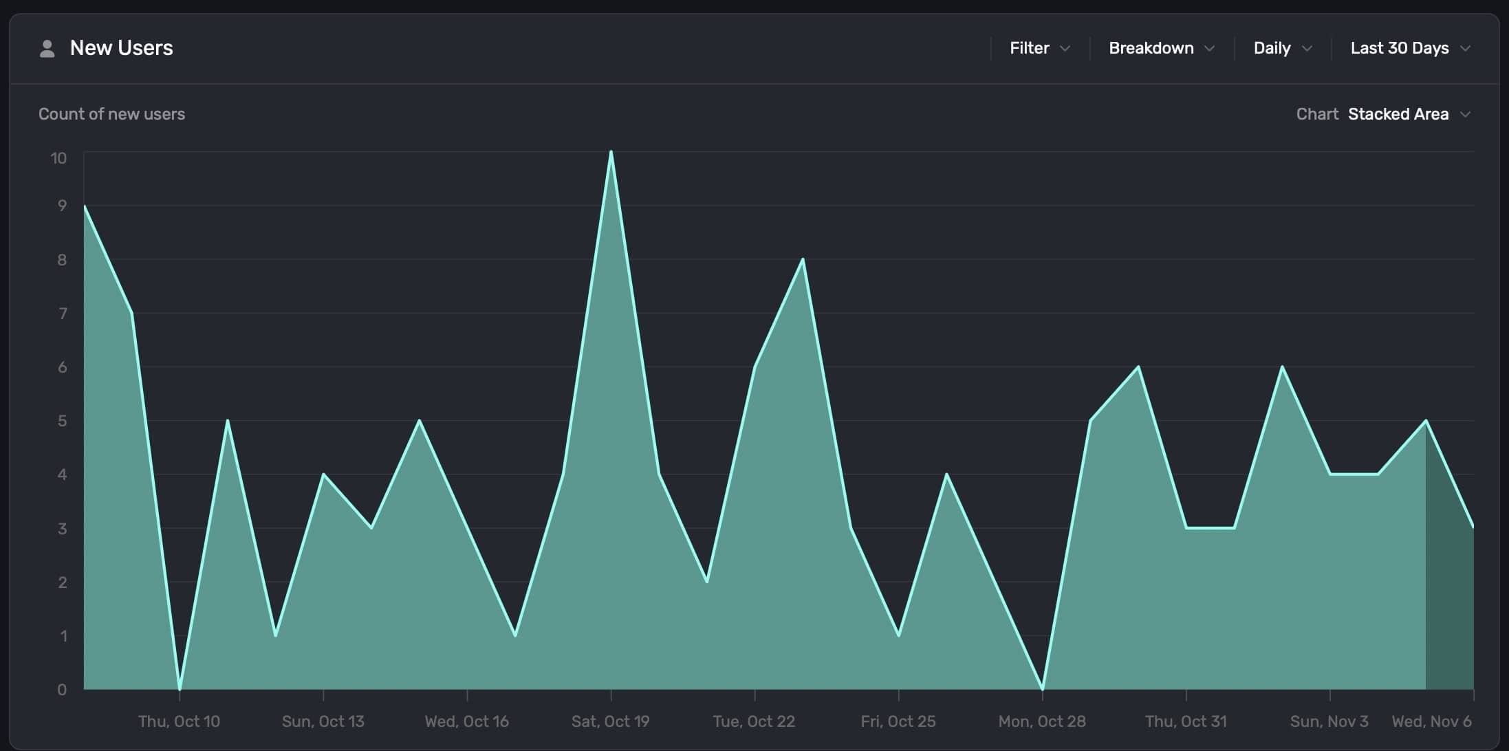 You can toggle the chart format between Stacked Area, Line, Stacked Bar, or Bar. Here is the same chart data in each format: