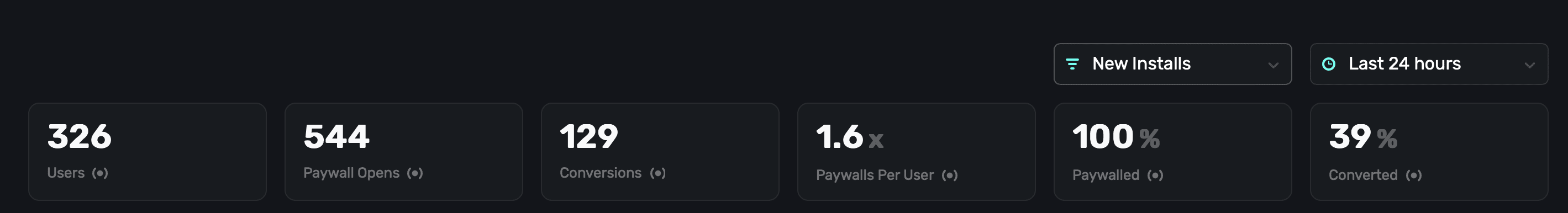 PaywalledThe percentage of how many users were shown a paywall in total.