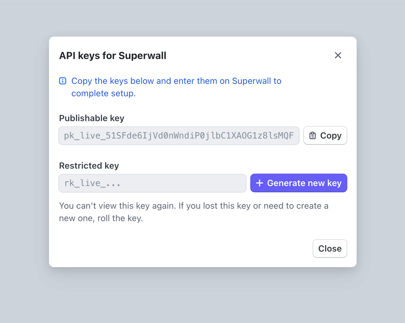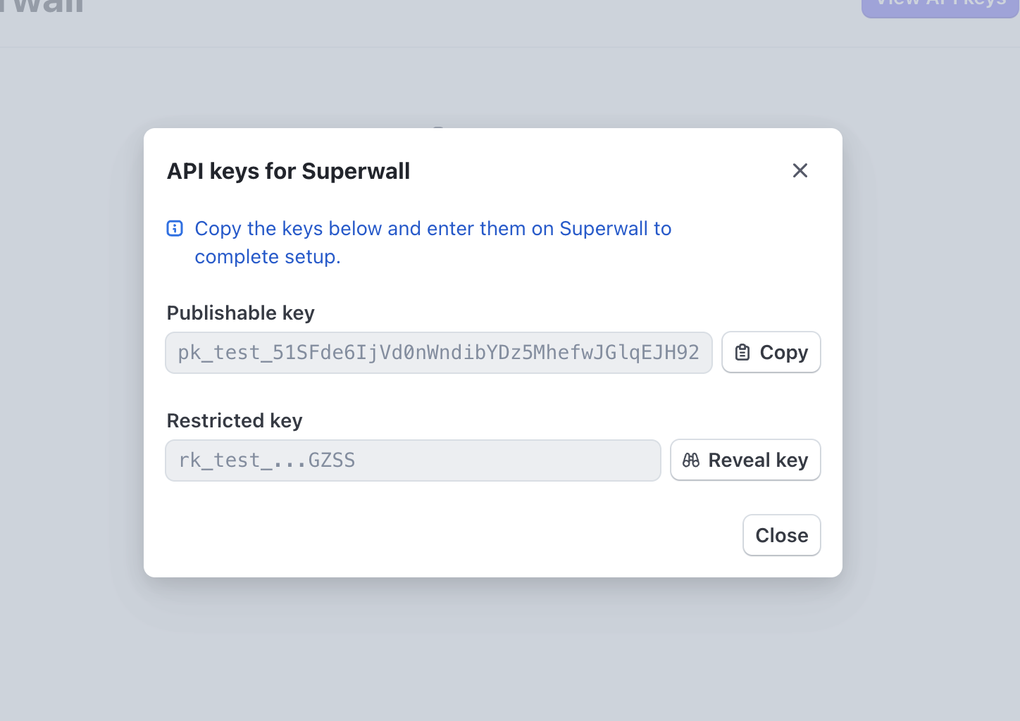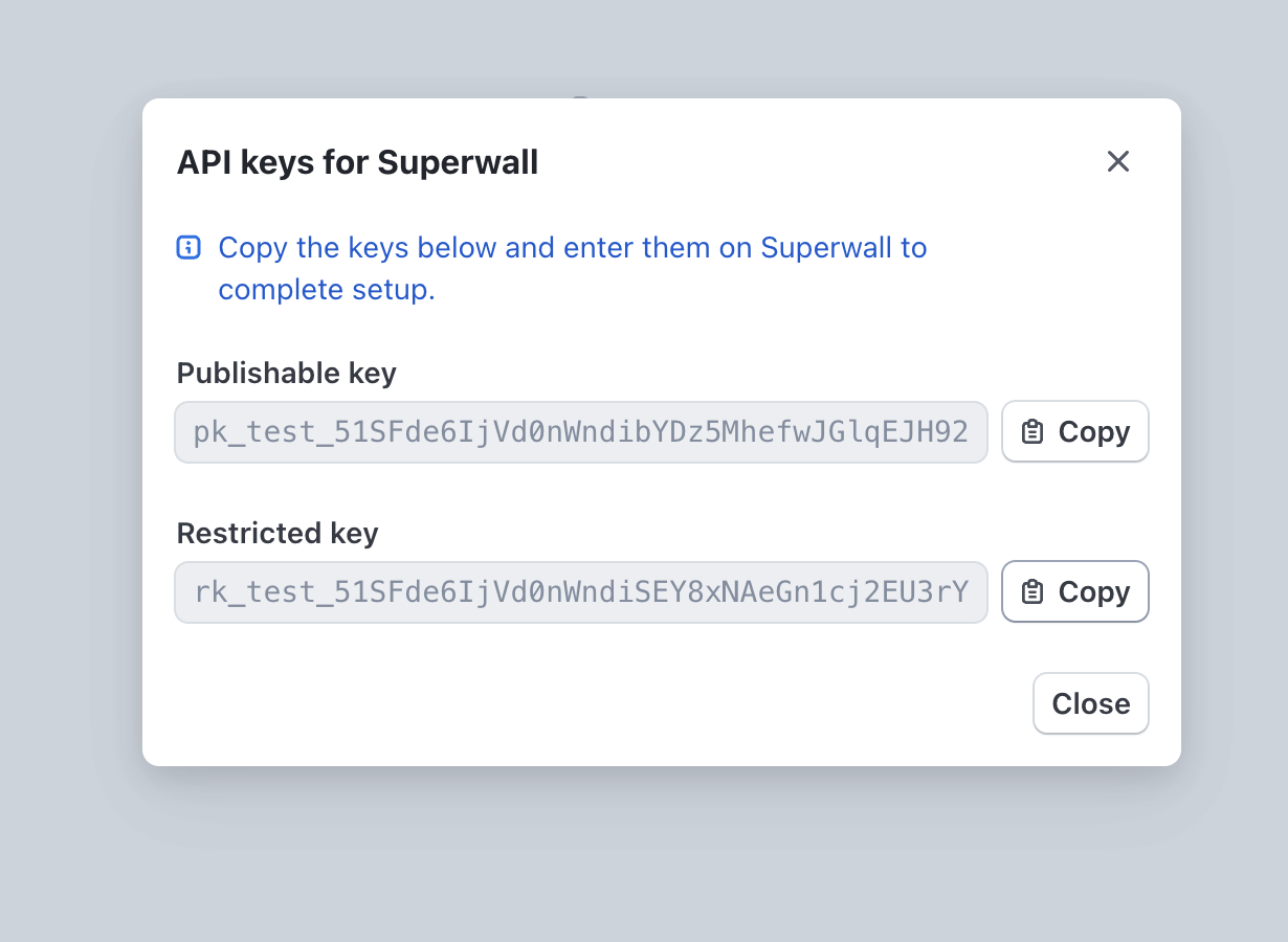 Paste the keys into the corresponding fields in Superwall: