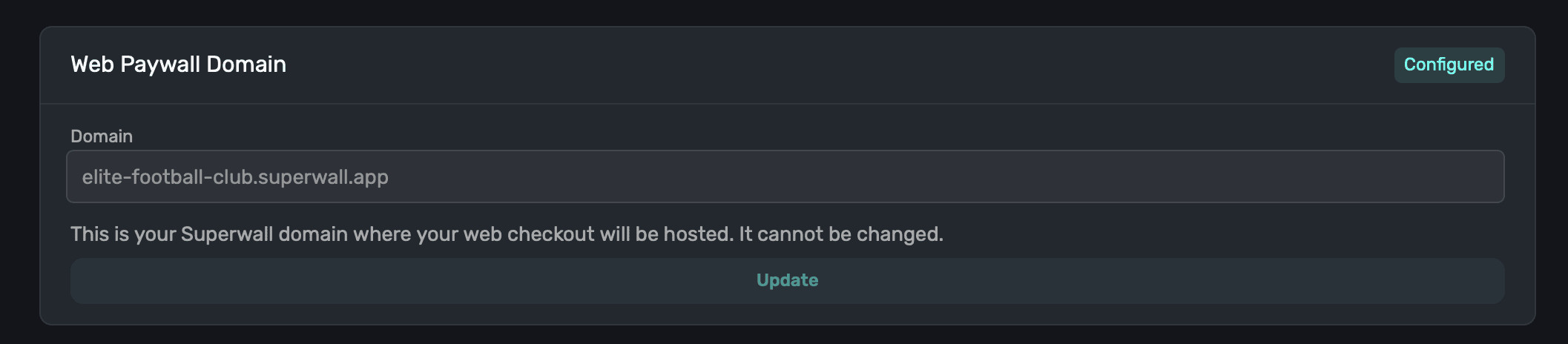 This is the domain your paywalls will be shown from. This was set when the Stripe app was created, and cannot be changed.